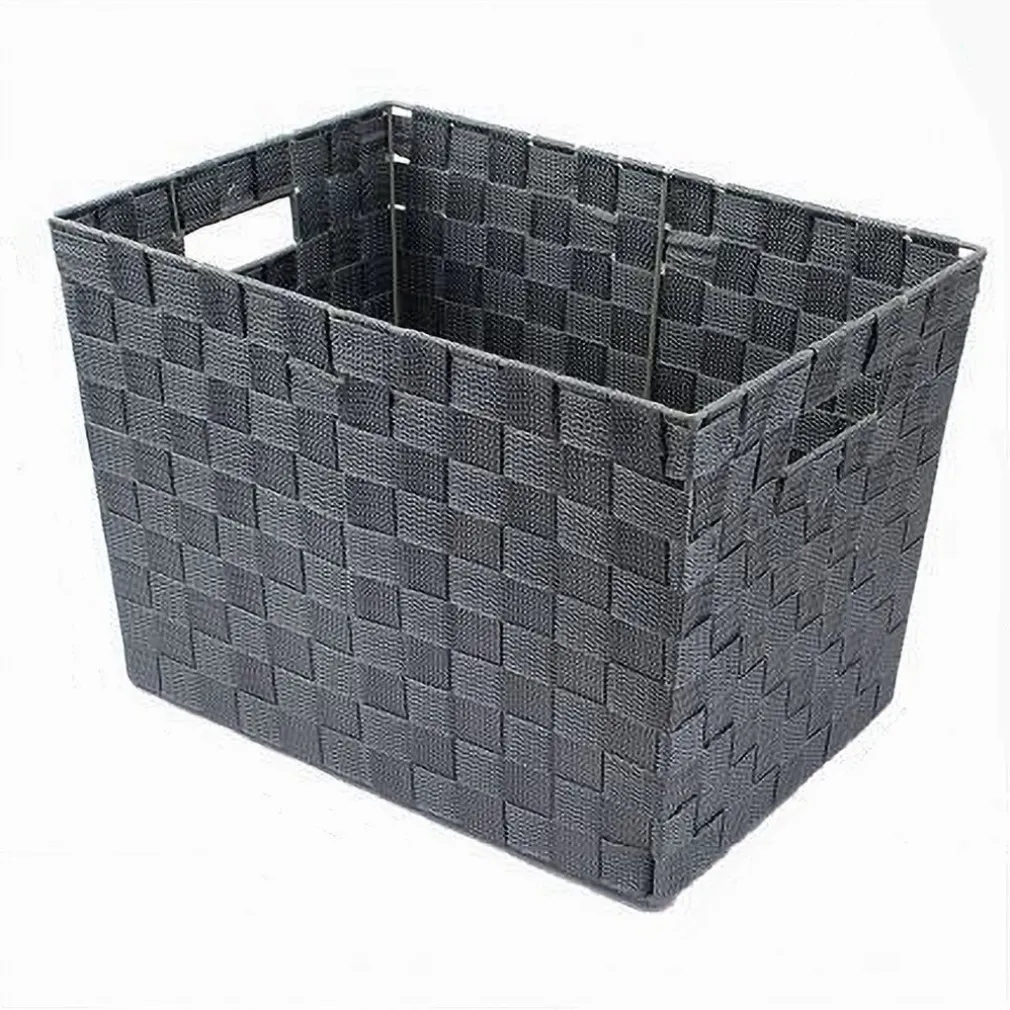Portaoggetti Cesto in Tessuto Intrecciato 38x26x25cm con Maniglie Grigio Scuro 79038