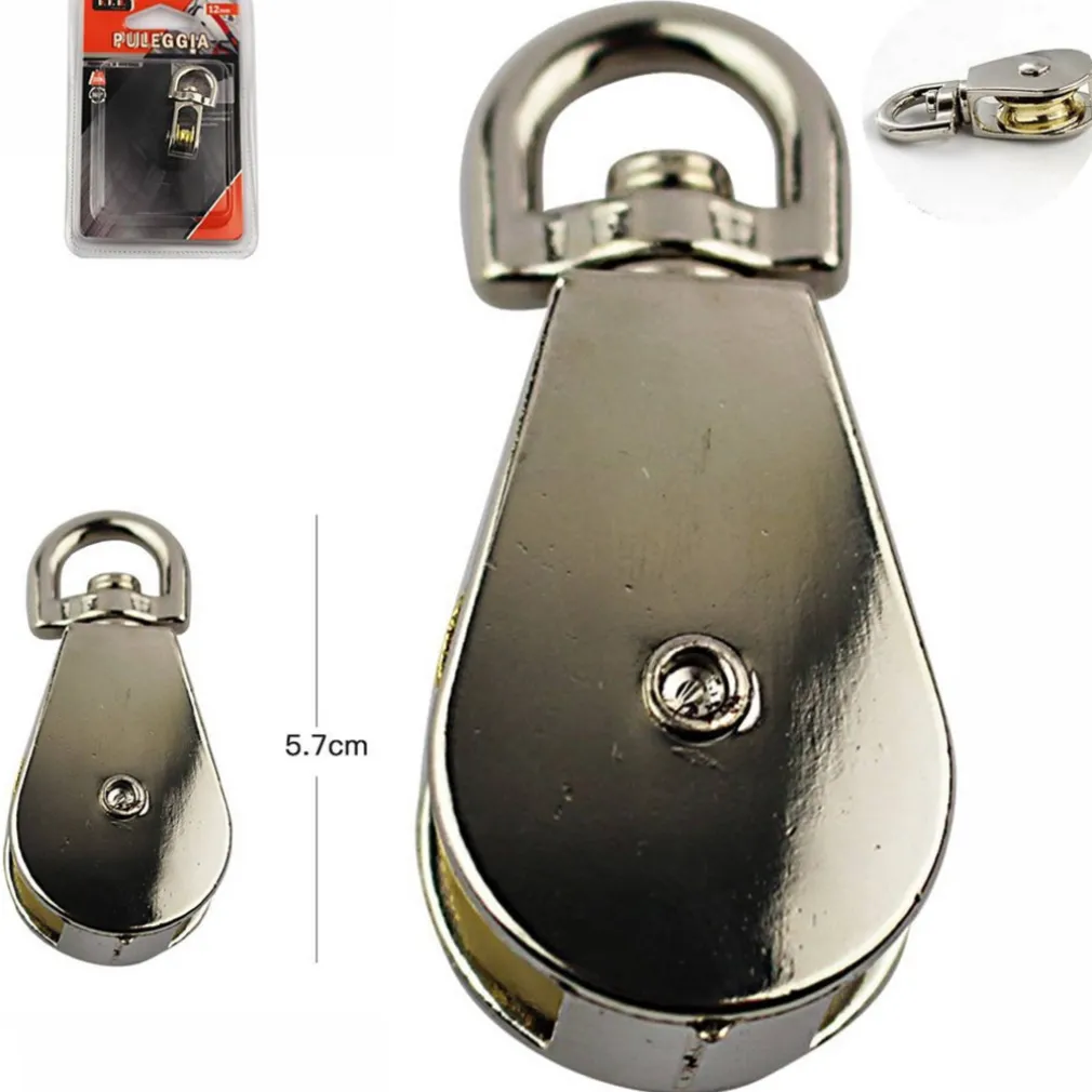 - La puleggia di rinvio con gancio ad occhio ha un design compatto. Il design ergonomico e la rotazione a 360 gradi per evitare che la corda si annodi.