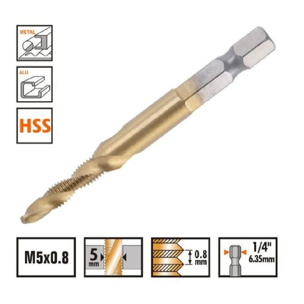 La punta per trapano M5x0.8 è un’opzione affidabile e versatile per soddisfare le esigenze di perforazione più esigenti. Caratterizzata da una filettatura metrica in metallo, questa punta offre prestazioni superiori e durature per una vasta gamma di applicazioni.