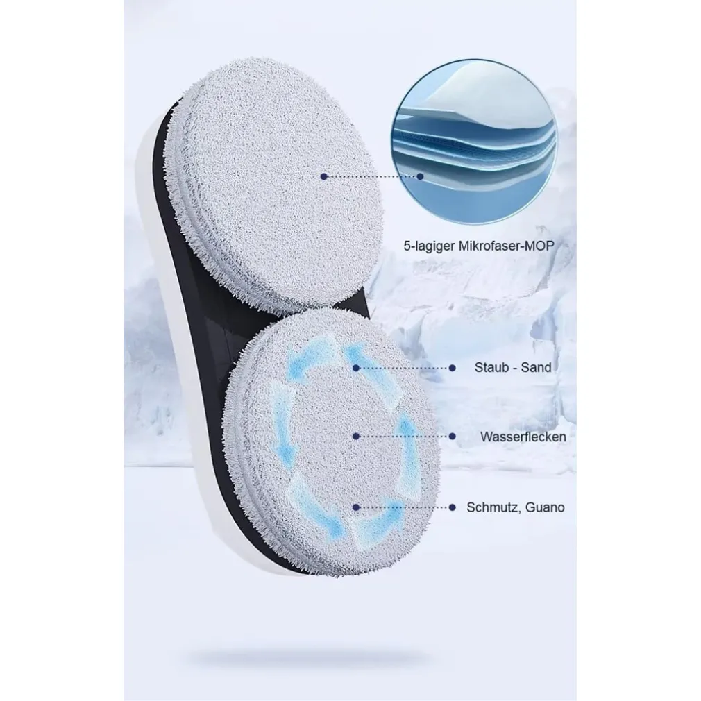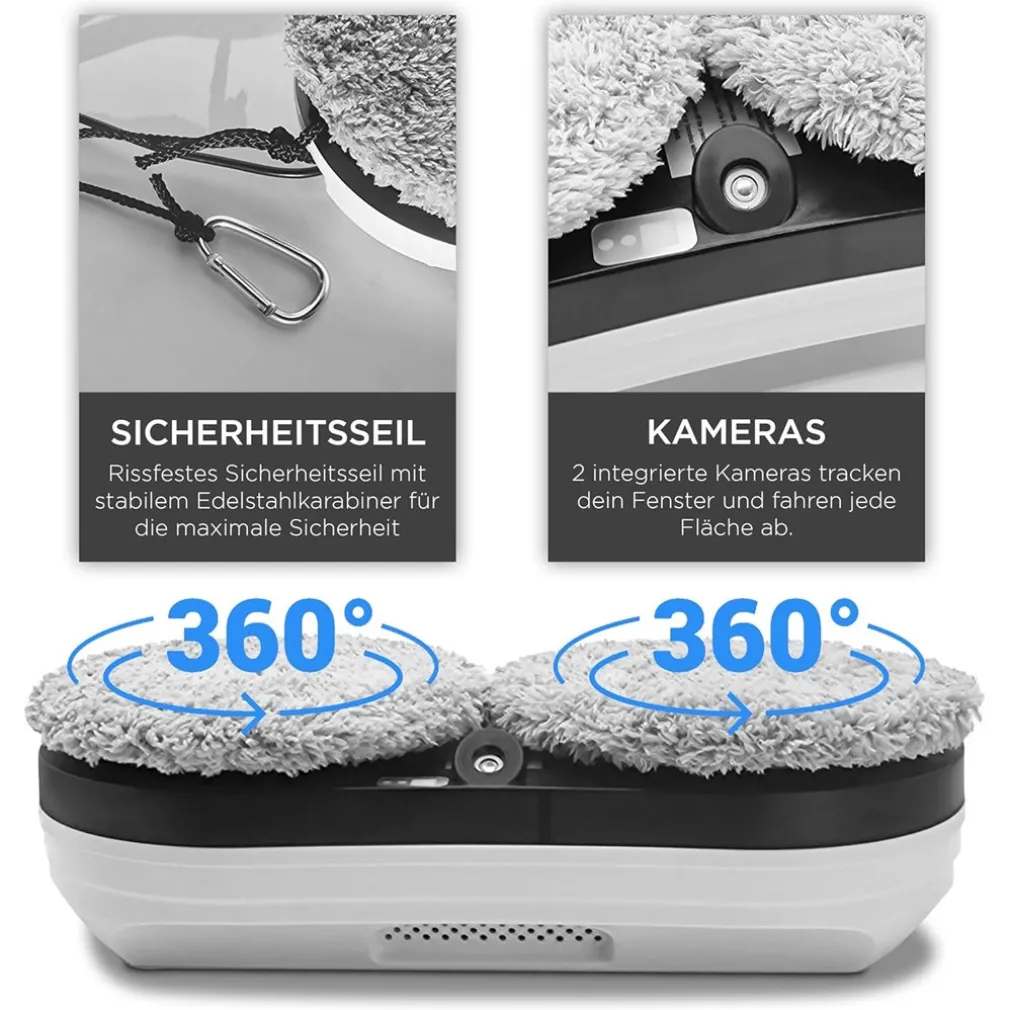 È un dispositivo elettronico avanzato, pensato per la pulizia automatica di vetri e superfici verticali, inclinate o standard. Il sistema bifacciale con potenza di aspirazione di 5600PA garantisce una tenuta salda su ogni superficie vetrata, mentre il controllo tramite app Tuya lo rende intuitivo da gestire anche a distanza.