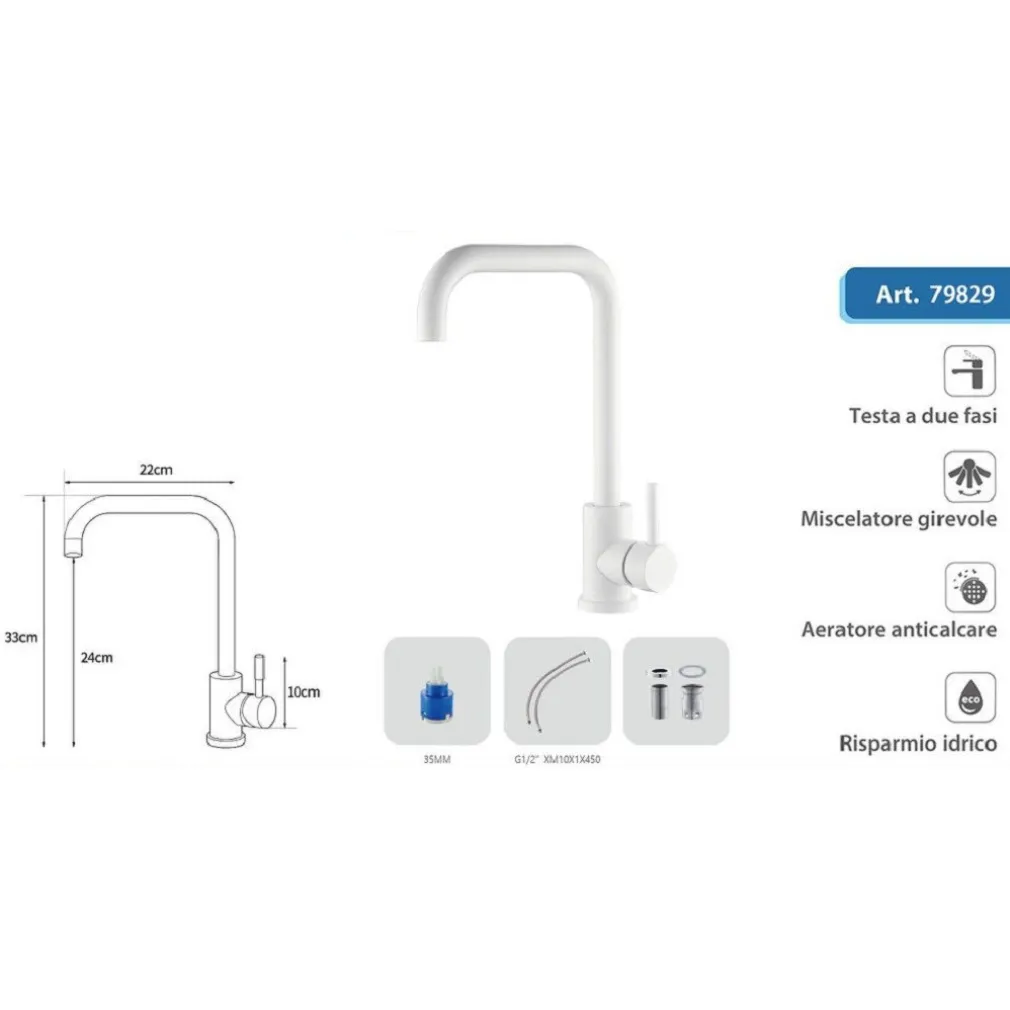 - Rubinetto Miscelatore Bianco per Lavello da Cucina Satinato a Foro Singolo 79829