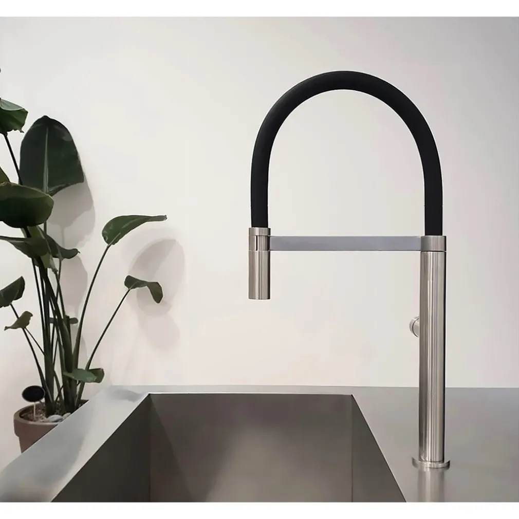 - Rubinetto Miscelatore Cucina Acciaio Satinato Nero Flessibile Monocomando 87350