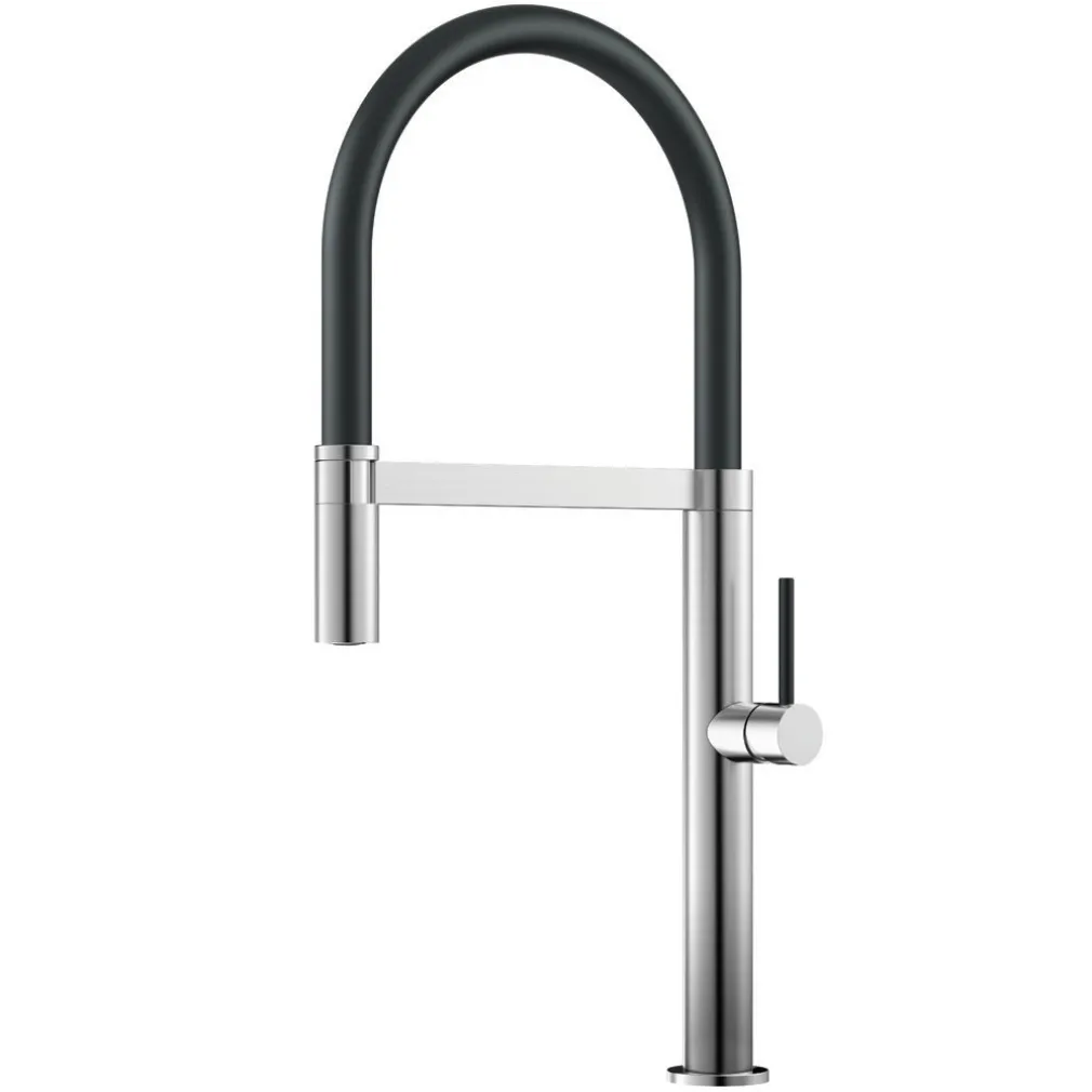 RUBINETTO MISCELATORE CUCINA ACCIAIO SATINATO NERO FLESSIBILE MONOCOMANDO 87350