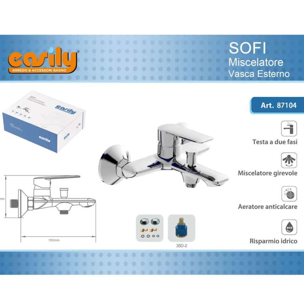 Elegante e cromato il miscelatore per vasca. Miscelatore monocomando. Cartuccia ad alta resistenza.