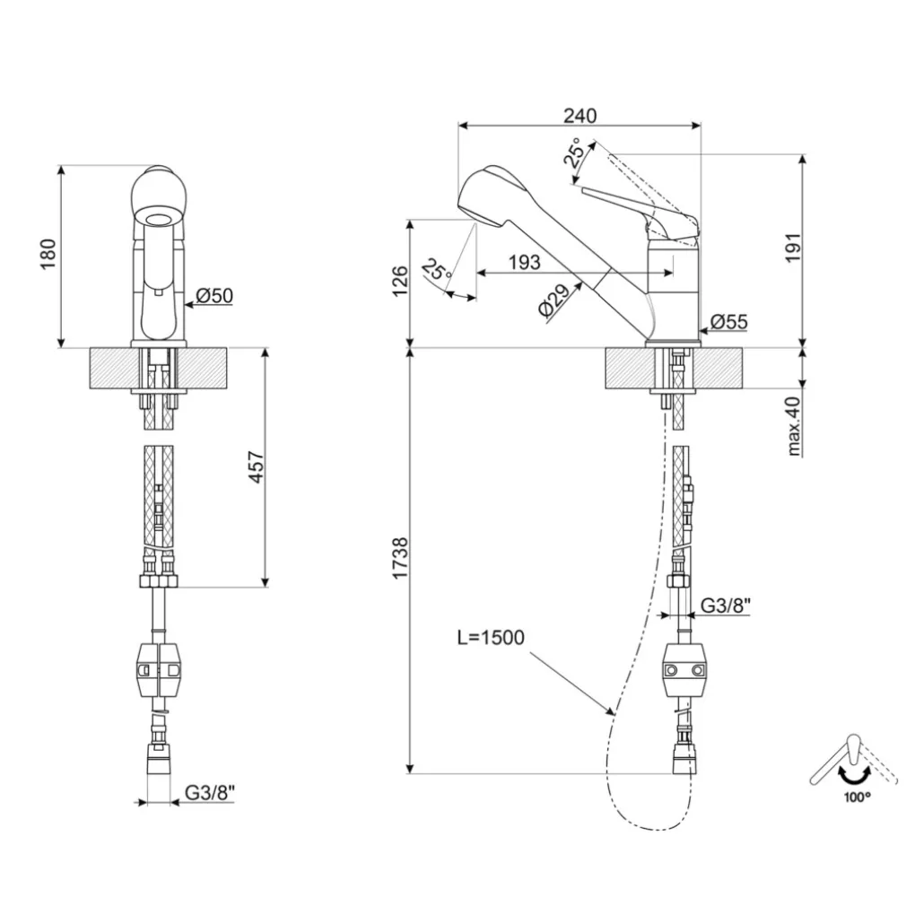 Miscelatore per lavello orientabile utilizzabile sia per lavelli ad una vasca che a due vasche. Dotato di doccetta estraibile è perfetto per il lavaggio di frutta e verdura o per risciacquare pentole sporche con molta facilità. Realizzato AVENA, viene fornito con fornito con due flessibili e tutti gli accessori per l’installazione.