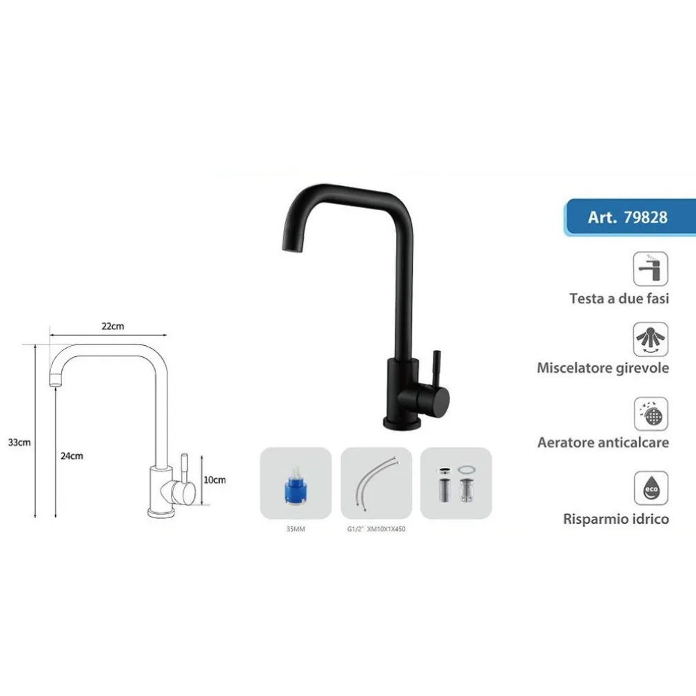 - Rubinetto Nero Miscelatore per Lavello da Cucina Satinato a Foro Singolo 79828