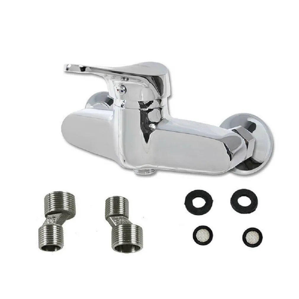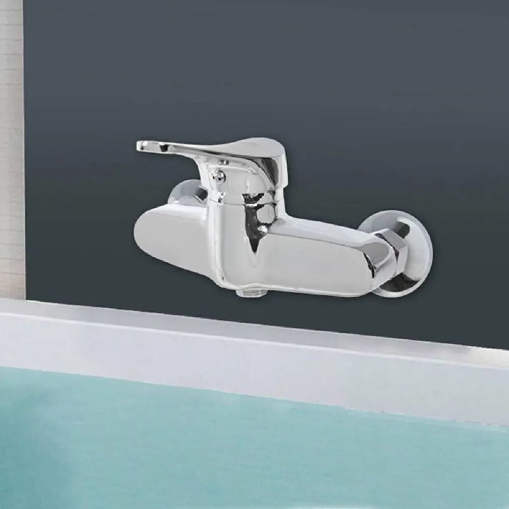 Rubinetto miscelatore da parete per doccia con attacco per tubo flessibile da ½” con monocomando regolatore di getto. Dal design moderno si adatta ad ogni arredamento. Realizzato in ottone cromato lucido, è dotato di limitatore di portata d’acqua, per un azionamento morbido e preciso della leva. Nella confezione troverete il kit per il montaggio.