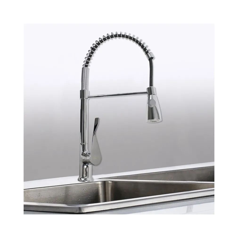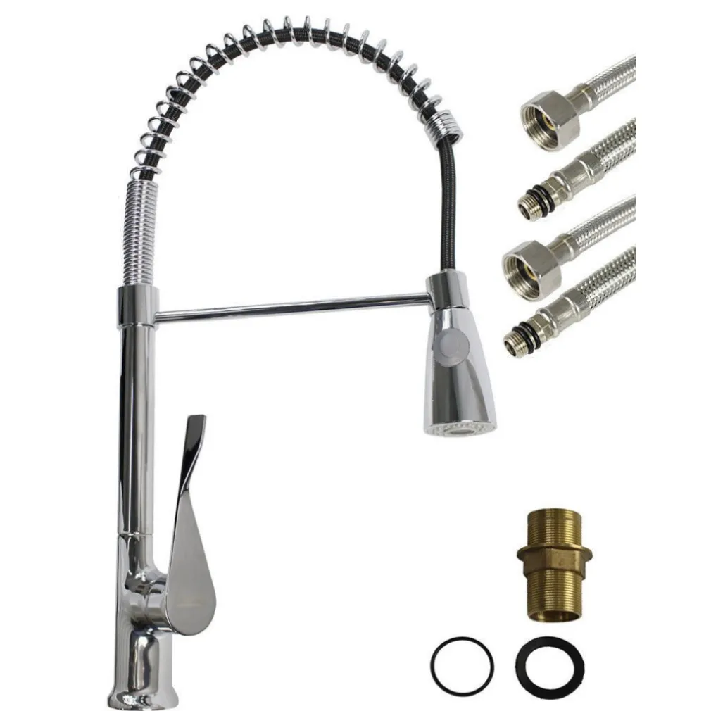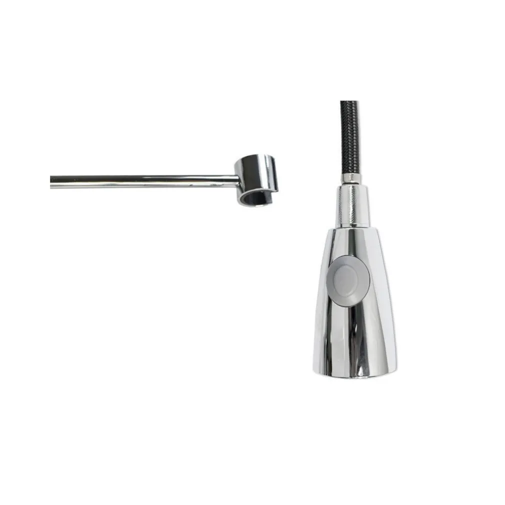 Rubinetto a canna alta con maniglia a leva lunga, composto da un beccuccio orientabile quindi utilizzabile per lavelli a due vasche, miscelatore monocomando e doccetta utile per il lavaggio di frutta e verdura o per risciacquare pentole sporche con molta facilità.