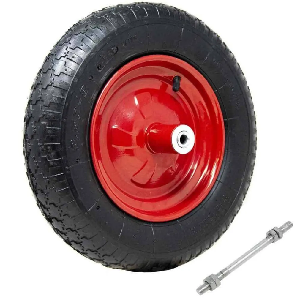 Questa fantastica gomma dal diametro di 35 cm è fornita di camera d’aria 3.50-8 con valvola di gonfiaggio e gomma a 4 Tele dotata di battistrada scolpito che garantisce un eccellente aderenza su qualsiasi tipo di terreno. Il cerchio è realizzato in acciaio di altissima qualità verniciato a polvere in colore rosso resistente alle intemperie che ne permette un perfetto uso anche all’esterno. La ruota può essere subito utilizzata e installata facilmente, vi permetterà di installare con facilità la ruota alla maggior parte delle carriole in commercio. Questa incredibile ruota è l’ideale sia per l’utilizzo privato sia in ambienti professionali come cantieri aziende ecc..