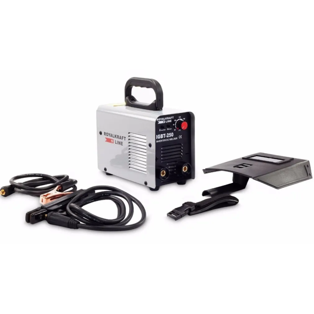 RoyalKraft Line Inverter IGBT 250A KD-250 MMA – Saldatrice TIG. Gamma di inverter moderno di saldatura La linea RoyalKraft realizzata in ultima tecnologia, i transistori ad alta intensità (con trasmissione inverter elettronica). I saldatori sono caratterizzati da dimensioni e peso molto inferiori rispetto alle macchine di saldatura convenzionali, rendendole particolarmente adatti ad ogni installazione.