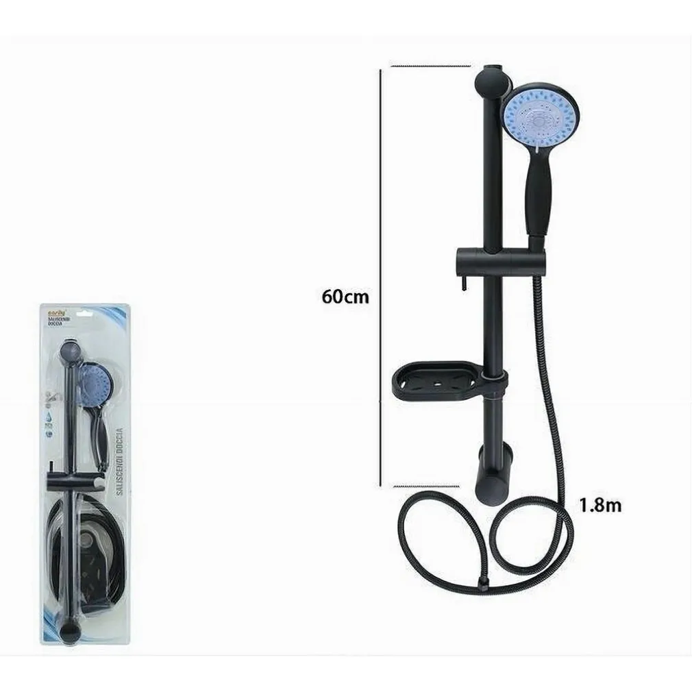 SALISCENDI COLONNA DOCCIA NERO SOFFIONE MULTIGETTO MENSOLA PORTA SAPONE BAGNO 87494