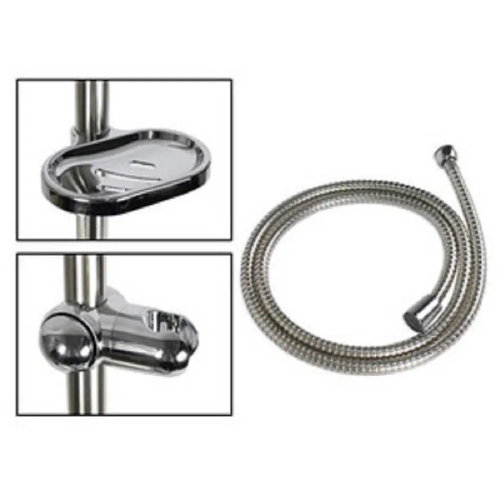 Saliscendi cromato con soffione dotato di ghiera girevole da cui potrete scegliere di volta in volta che tipo di gettata desiderate. Semplice da montare e da pulire, la linea moderna ed essenziale lo rende adatto a qualsiasi stile di bagno. Fornito con tubo flessibile per il soffione, un comodo portasapone scorrevole e viti per il fissaggio.