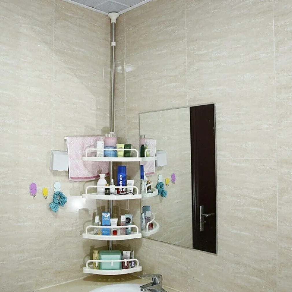 SCAFFALE ANGOLARE PER ANGOLO DOCCIA BAGNO TELESCOPICO 4 MENSOLE CON GANCI