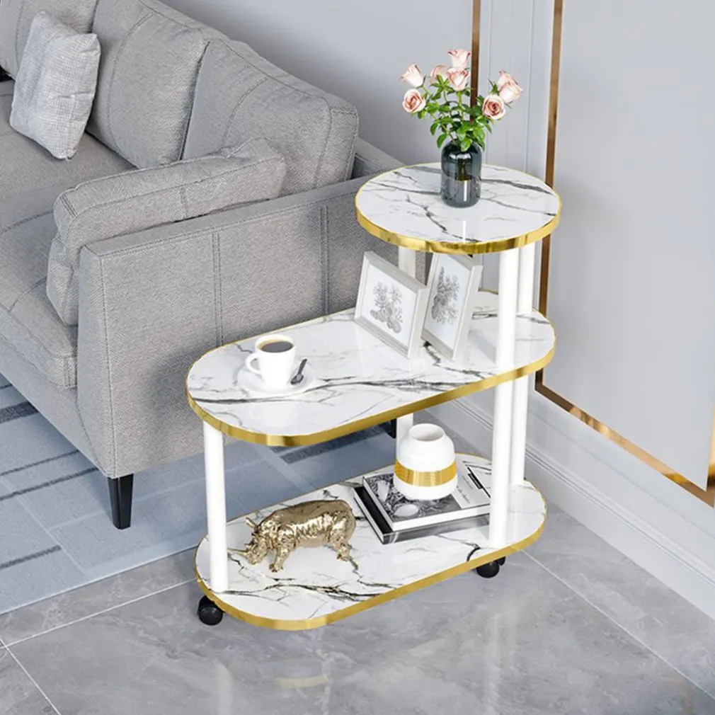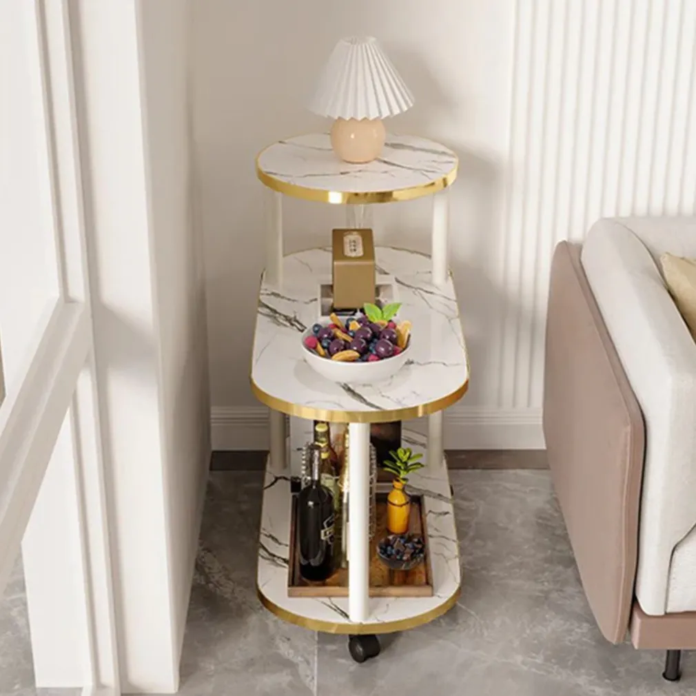 SCAFFALE MULTISTRATO IN LEGNO A 3 LIVELLI TAVOLINO IN MARMO CON RUOTE PER CAMERA SOGGIORNO