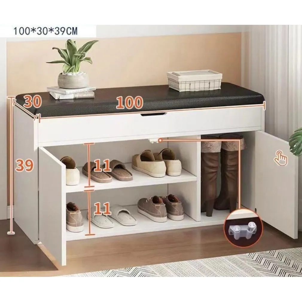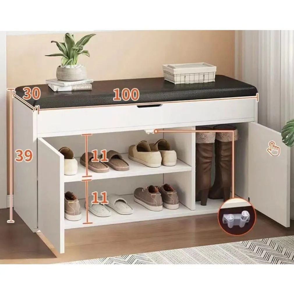 - Stoccaggio Aperto e Nascosto: La scarpiera presenta 2/3 livelli capaci di ospitare 6-10 paia di scarpe. L’ampio spazio sotto il sedile può contenere ombrelli, sciarpe, articoli per animali domestici e molto altro.