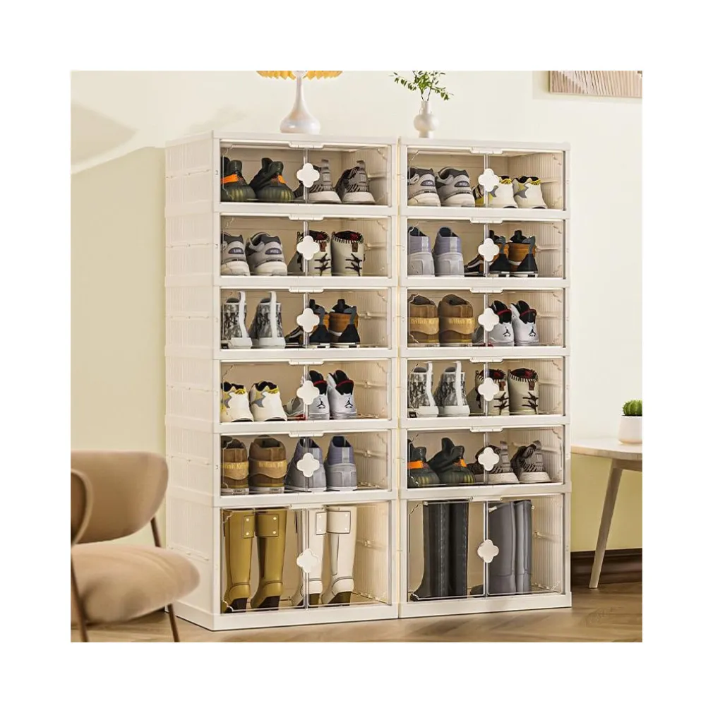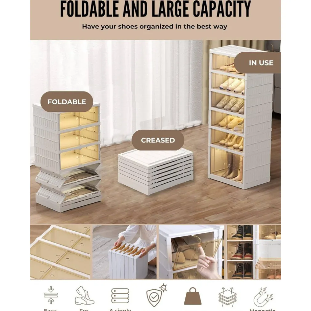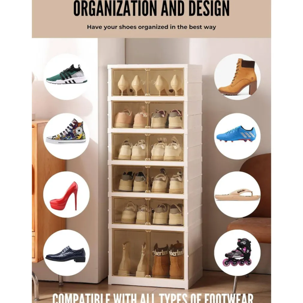 Scatola per Scarpe Impilabile Trasparente: Scopri la comodità e l’efficienza con la nostra Scarpiera Pieghevole. Questo organizer per scarpe senza installazione ti permette di tenere le tue scarpe in ordine, protette e facilmente accessibili.
