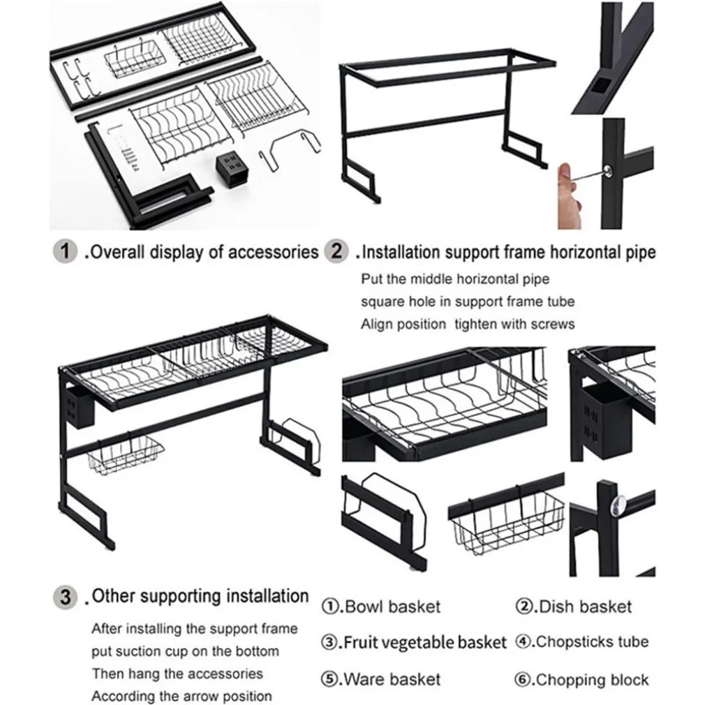 Rack per piatti integrato: Il nostro scolapiatti presenta un design innovativo con più cesti e accessori per garantire uno stoccaggio efficiente di tutto, dalle stoviglie ai prodotti per la pulizia. Che tu debba riporre piatti, coltelli, ciotole o bicchieri da vino, avrai sempre tutto a portata di mano. La ferrovia superiore regolabile ti permette di personalizzare lo spazio in base alle tue esigenze, rendendo la pulizia della cucina un gioco da ragazzi.