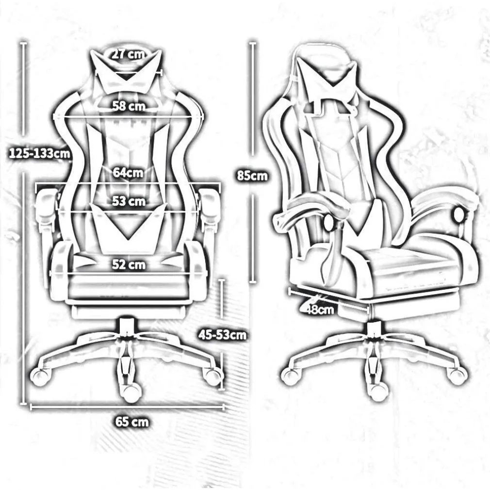 Design automobilistico che riprende le tipiche sedute delle auto da corsa, schienale ergonomico sottile con poggiatesta e cuscino lombare rimovibili, entrambi sono imbottiti di spugna ad alta densità e possono essere regolati lungo lo schienale attraverso le apposite cinghie, il cuscino lombare riduce la pressione della colonna vertebrale all’altezza lombare mentre il poggiatesta allieva la fatica e protegge la spina dorsale del collo per avere il massimo del confort durante il gioco o il lavoro.