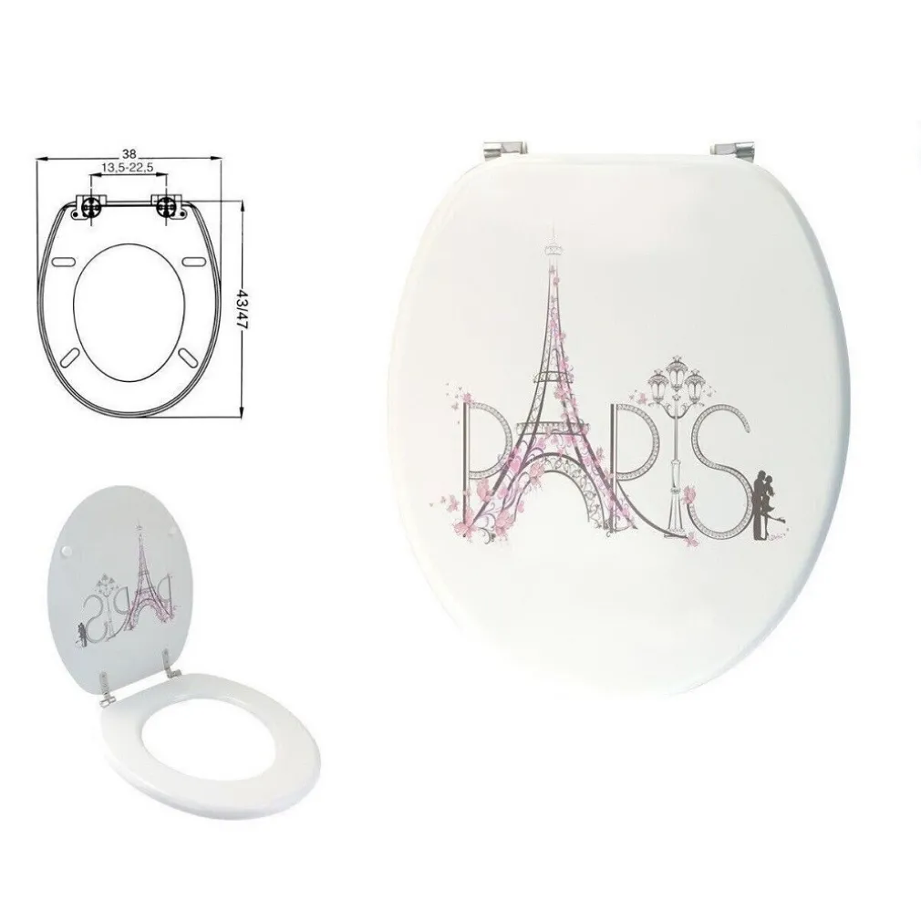 Copriwater universale realizzato in legno MDF resistente e serigrafato per dare un tocco in più al bagno.