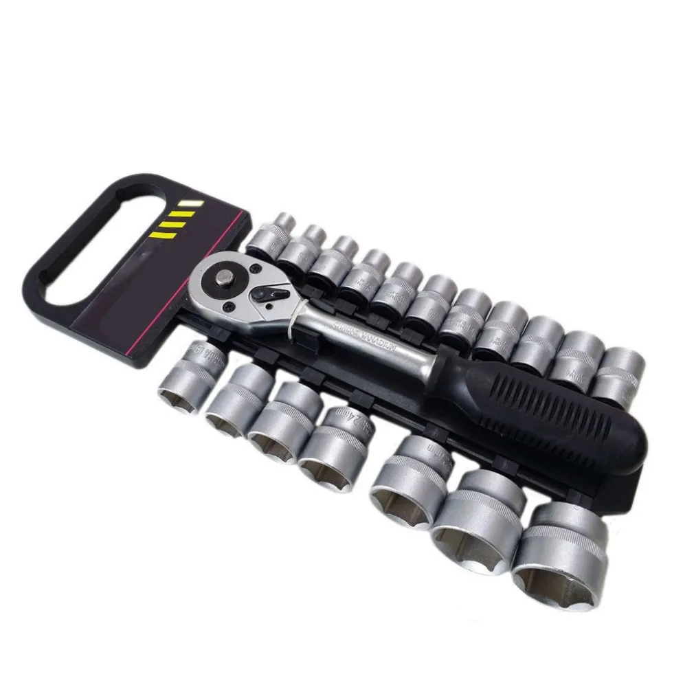 Pratico set da 19 pezzi di chiavi a bussola a cricchetto reversibile esagonali da 1/2″.