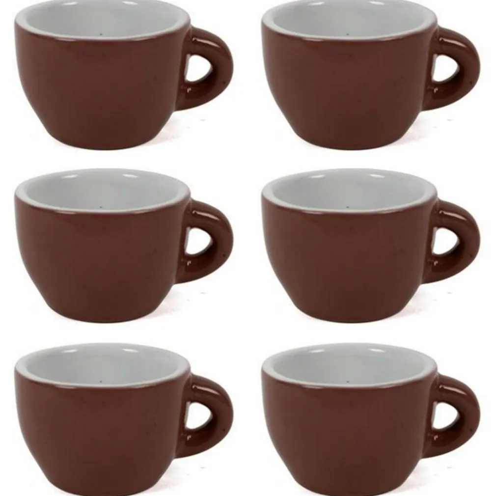 - 1 x Servizio Set 6 Tazzine da Caffe Tazzina Bassa in Ceramica Marrone da Cucina