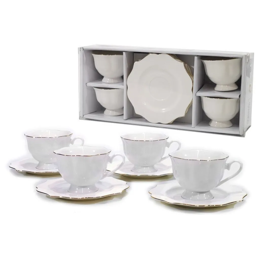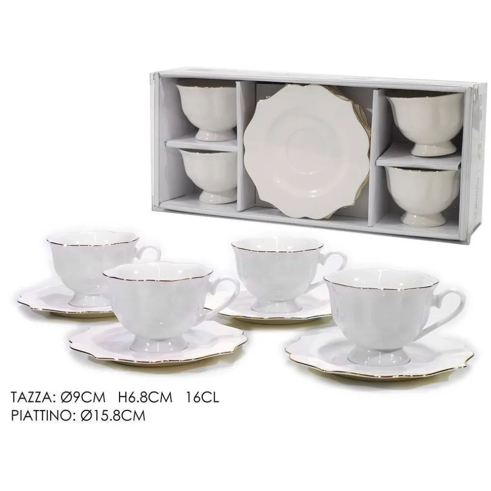 SERVIZIO TE’ 4 PIATTINI + 4 TAZZE 16 CL MODELLO LYANNA FINE PORCELLANA BIANCA