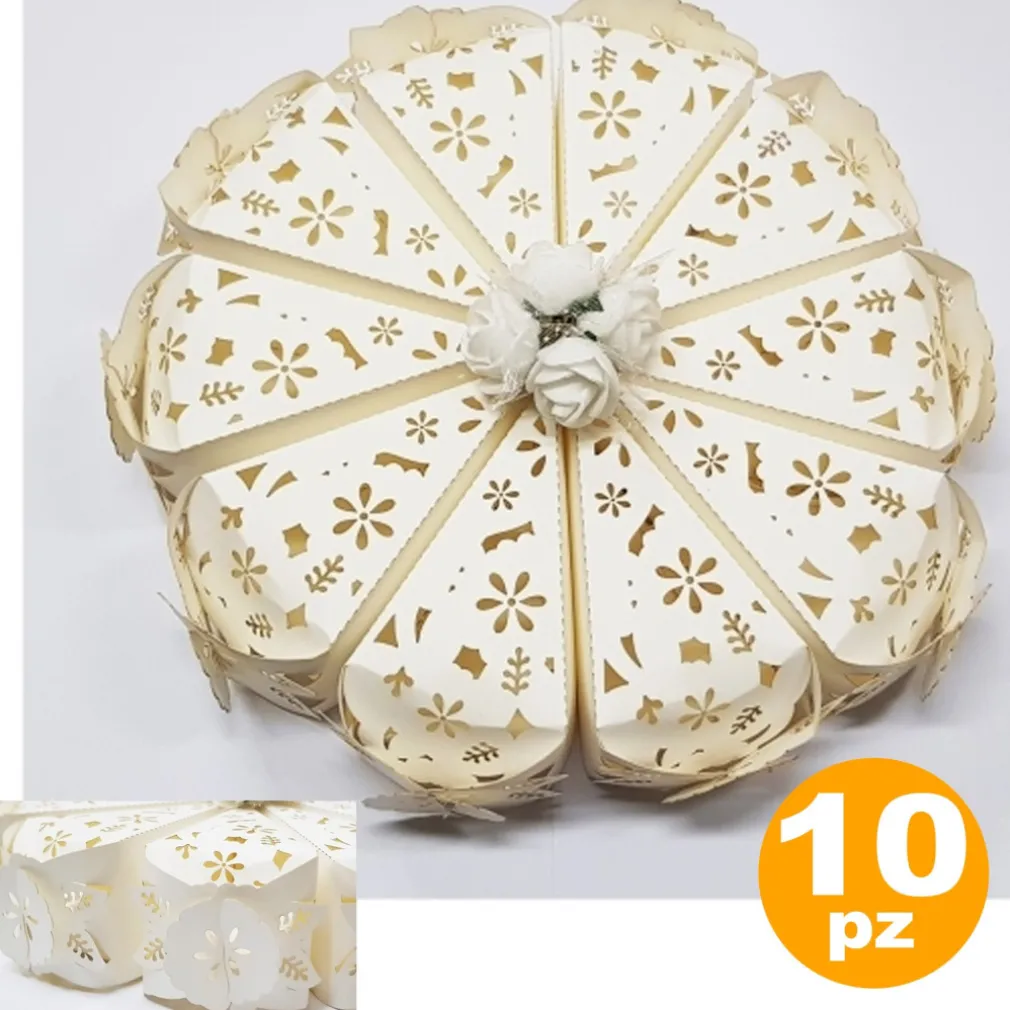 Set 10 Bomboniere Scatolina Spicchio Torta Bianco Fiore Portaconfetti Matrimonio