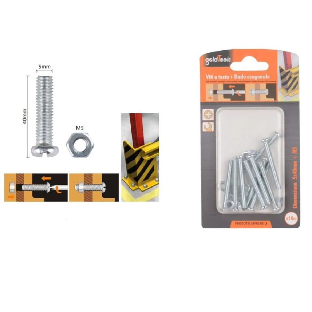 Acquista il set di 10 viti con testa a croce tonda e dadi esagonali M5 per avere la sicurezza e la tenuta necessarie per le tue applicazioni di fissaggio. La confezione include tutto il necessario per il montaggio, risparmiando tempo e denaro nell’acquisto di singoli componenti.