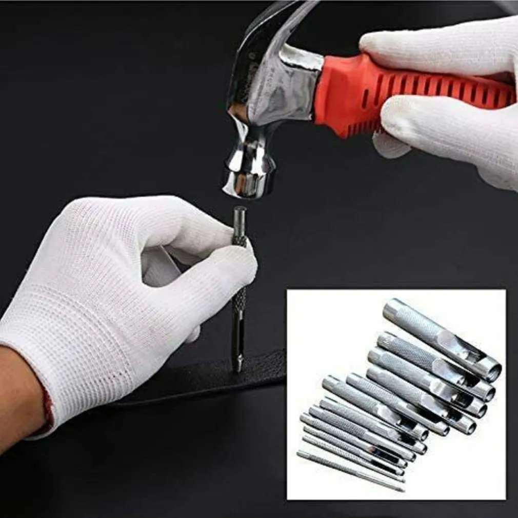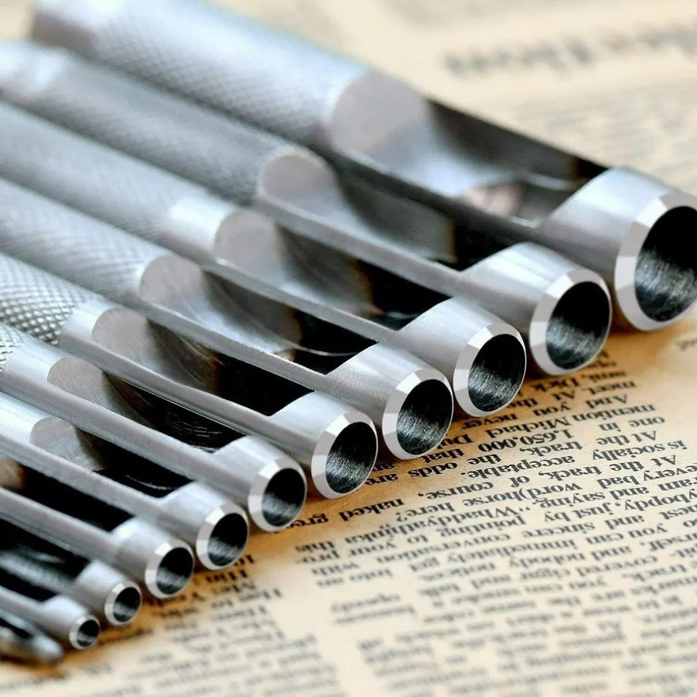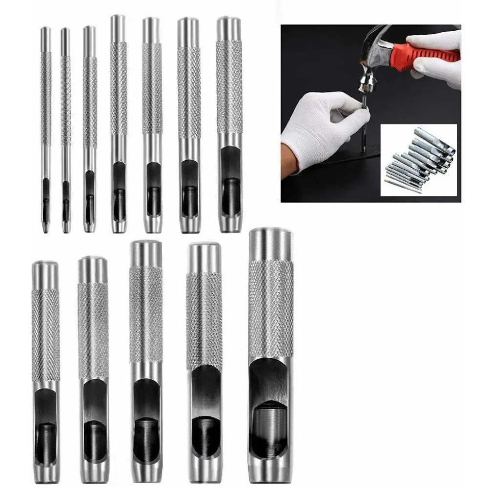 Set 12 fustelle punzoni in acciaio per cuoio lamiere stoffa pelle legno 3-19 MM