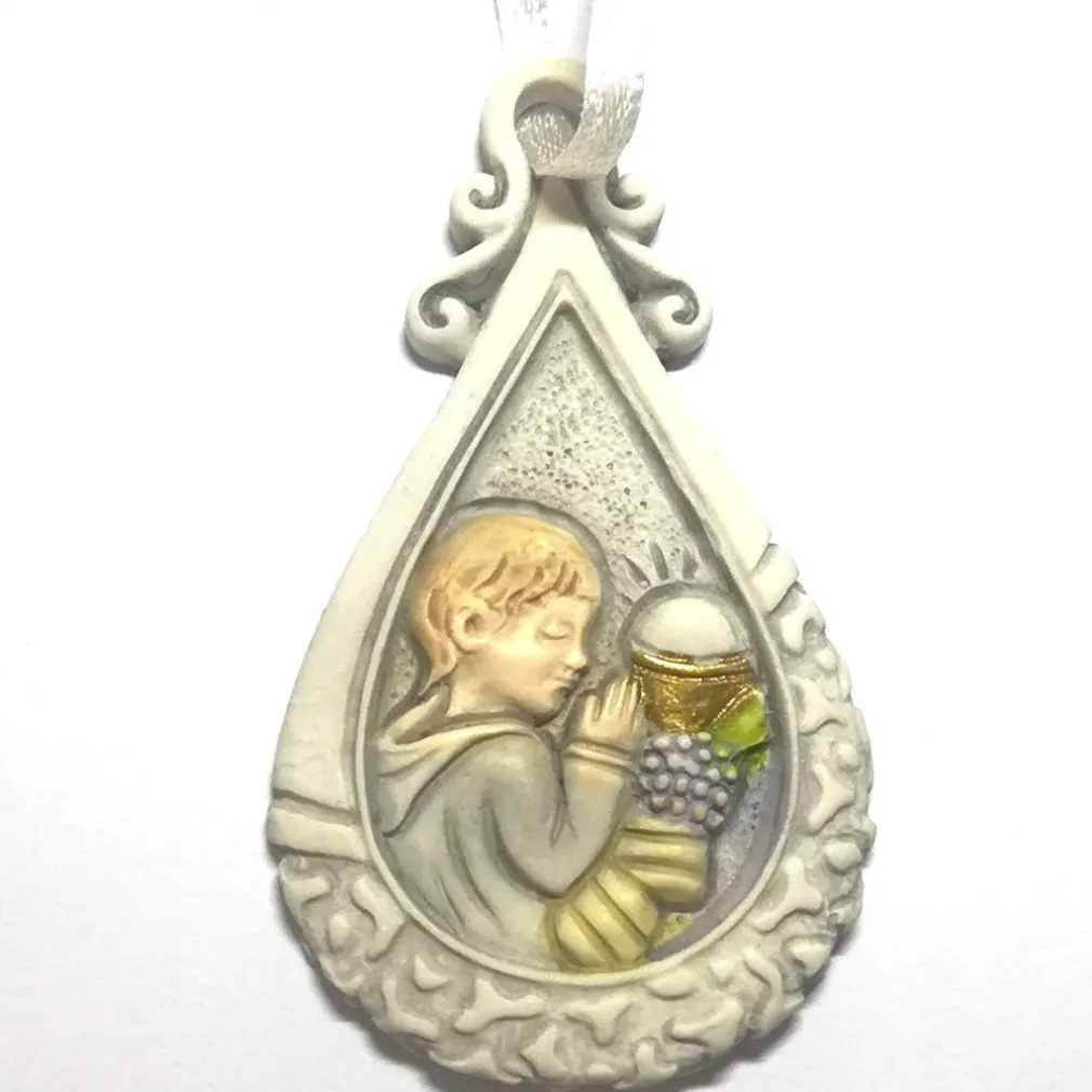 Design Simbolico: La forma a goccia rappresenta il sacramento in modo delicato e simbolico, rendendo ogni pezzo unico e significativo.