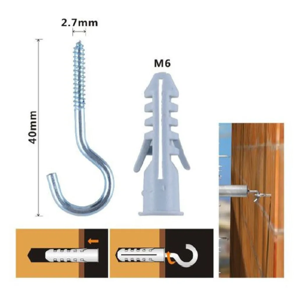 SET 12 PEZZI TASSELLI M6 CON VITI A GANCIO 2.7x40mm