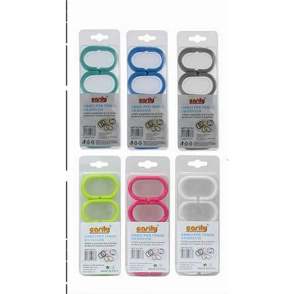 Set 12 PZ Anelli Gancio per Tenda da Doccia Box Bagno Colorati in Plastica 52763