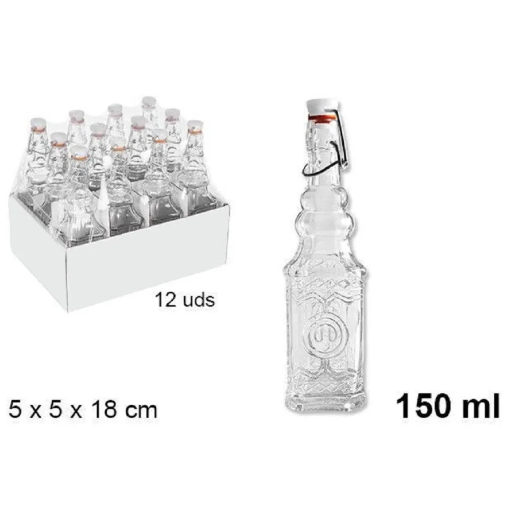 Set 12 pz Bottiglie in Vetro Trasparente Quadrata con Tappo Meccanico