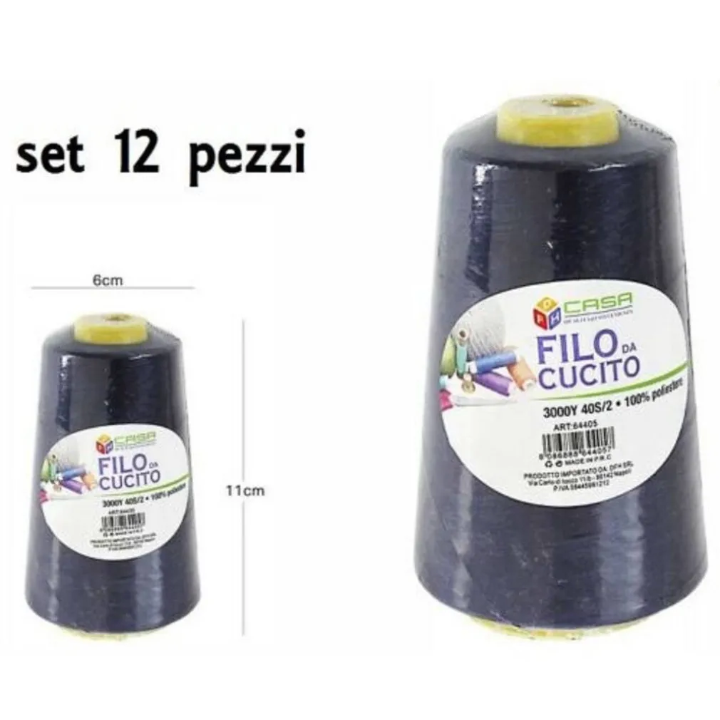 Set 12 Pz Filati a Cono Filo Poliestere Cucito 3000Y 40S/2 Blu – Filo Cotone