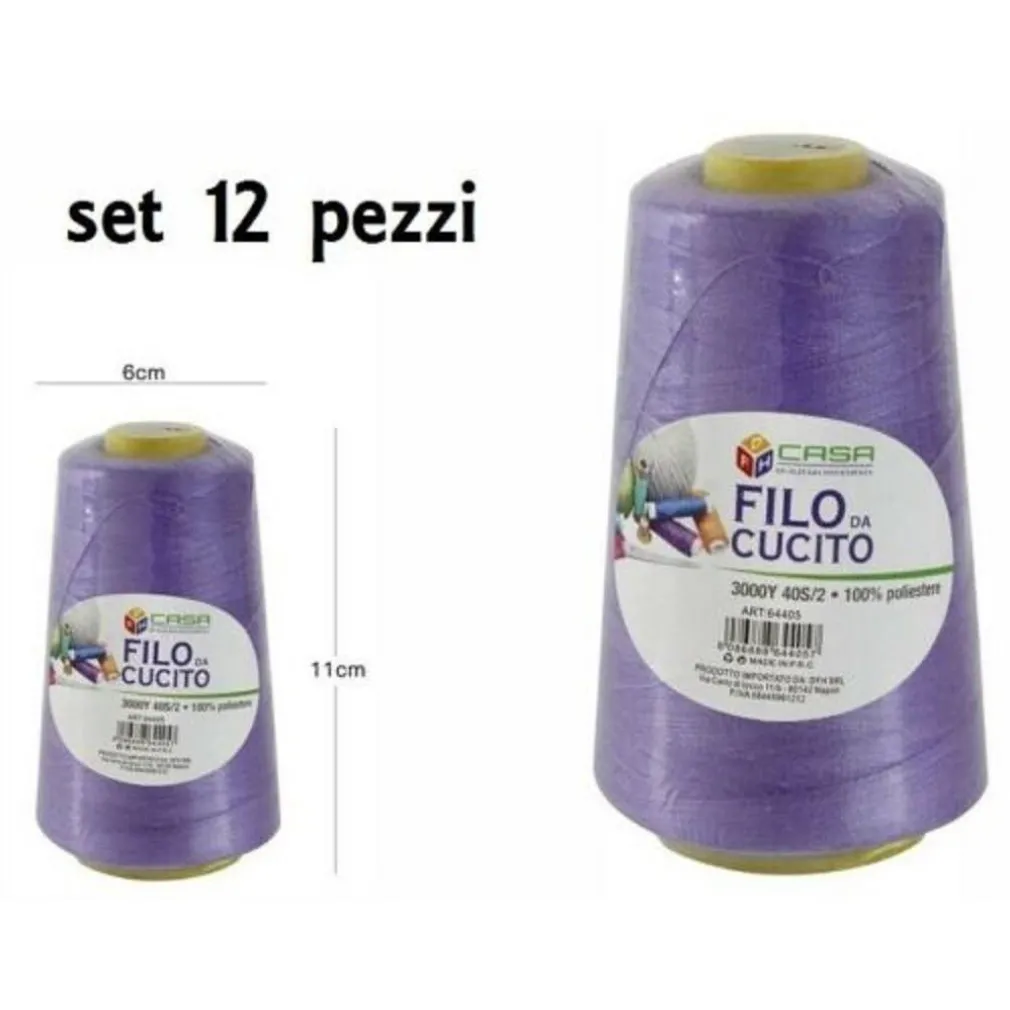 Set 12 Pz Filati A Cono Filo Poliestere Cucito 3000Y 40S/2 Viola Gomitolo Cotone