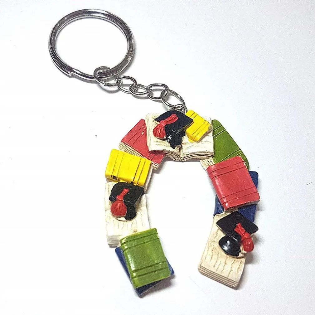 12PZ Bomboniera Ferro Cavallo Laurea Cappello Libro Fortuna Ceramica Portachiave-Set