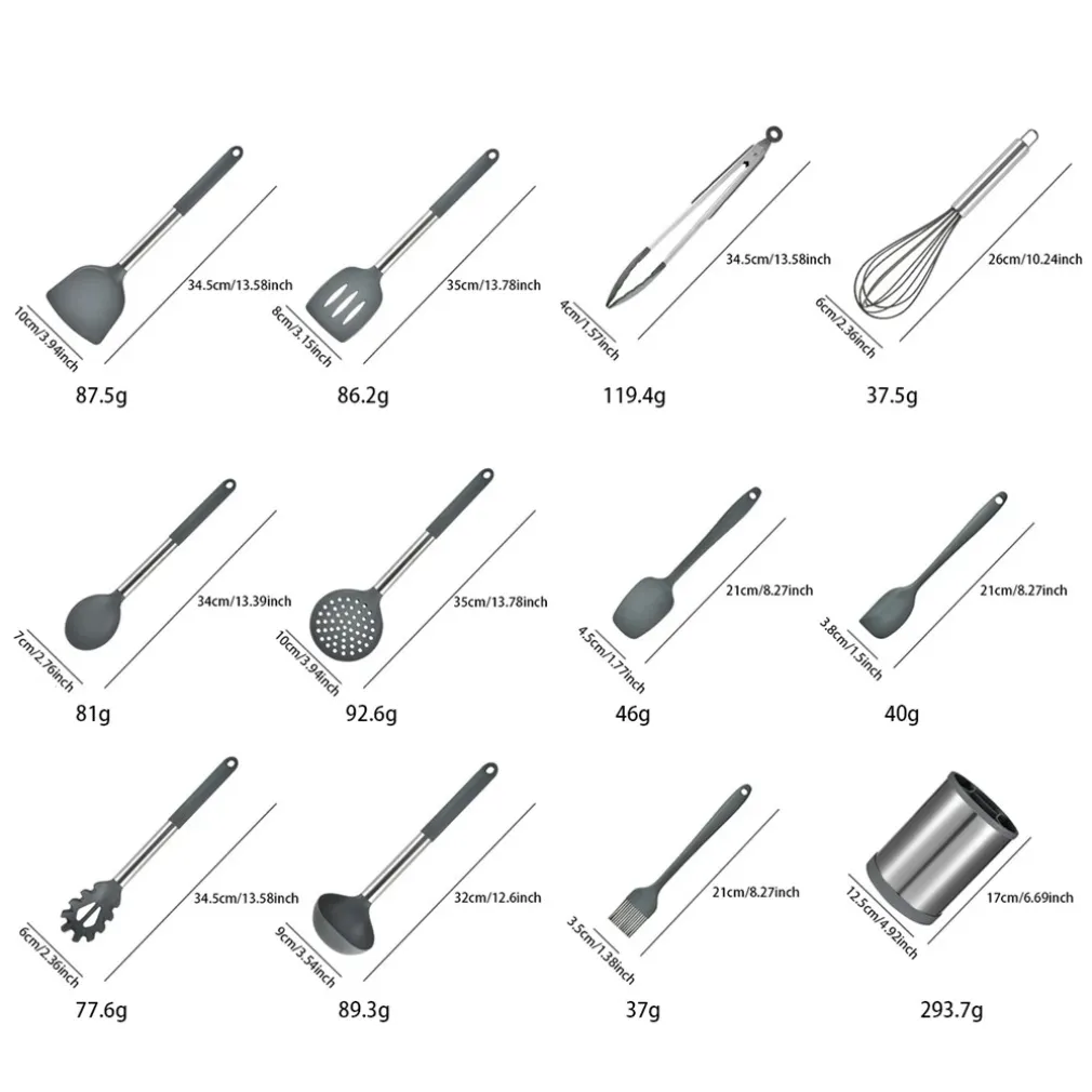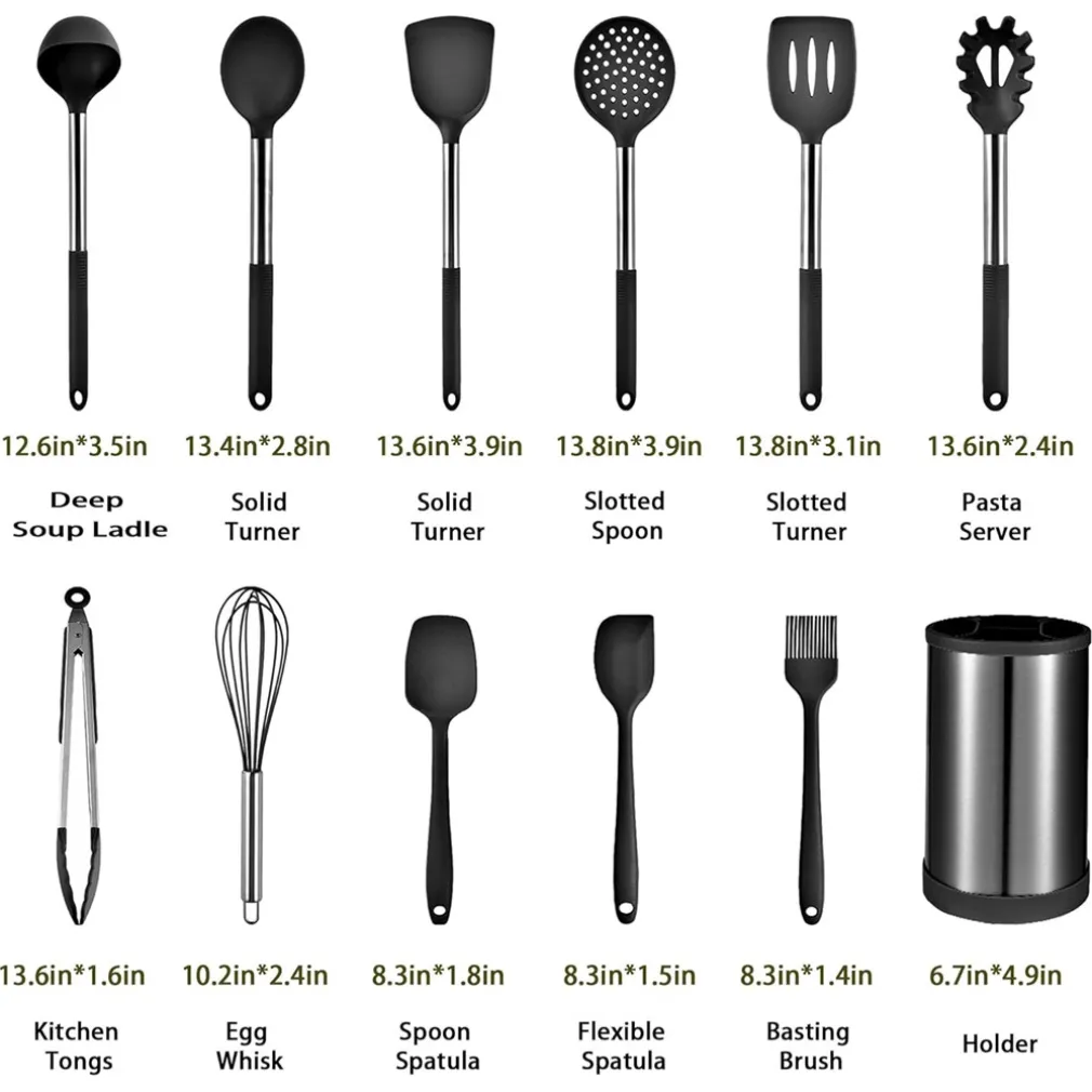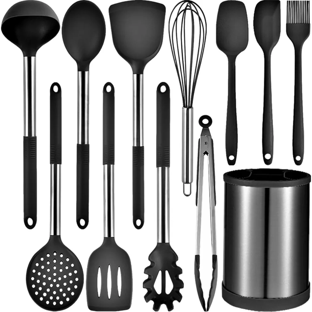 SET 12PZ UTENSILI DA CUCINA MESTOLI IN SILICONE ACCIAIO ANTIADERENTE PORTAPOSATE GIREVOLE – La scelta professionale per una cucina moderna ed efficiente
