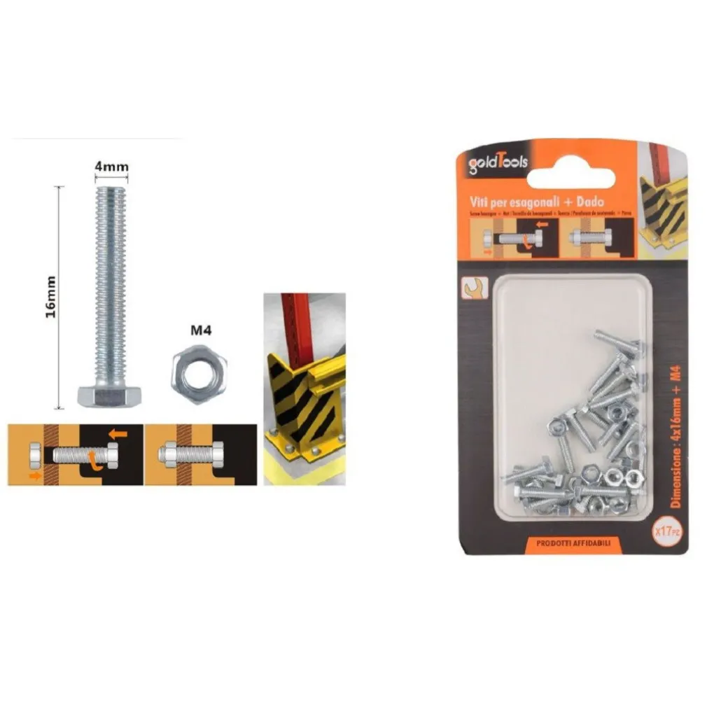 SET 17 PZ VITE VITI PER ESTERNO A TESTA ESAGONALI 4X16MM CON DADI DADO M4 90904