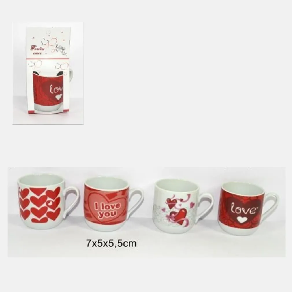 Set 2 pezzi tazzina caffe’ con cuori san valentino