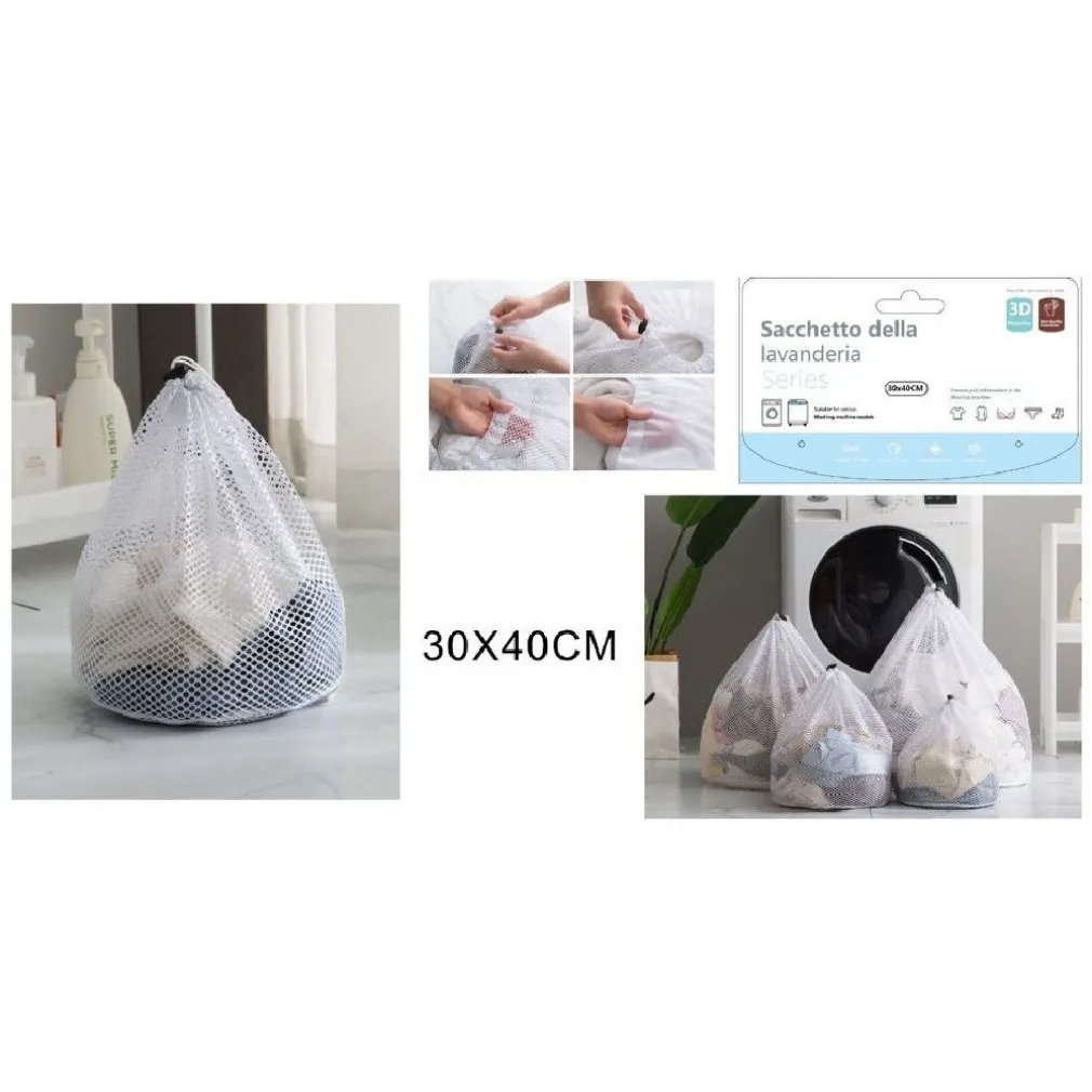 SET 2 PZ SACCHETTO PER LAVANDERIA BUCATO BORSA A RETE BIANCHERIA 30X40 CM 58138