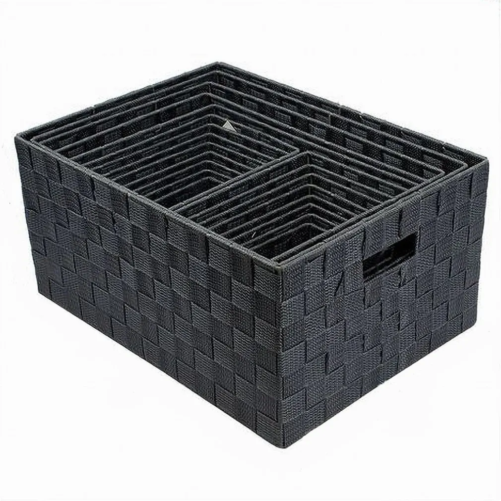 SET 21PZ SCATOLA IN TESSUTO PORTAOGGETTI ORGANIZER CON MANICI GRIGIO SCURO 79086