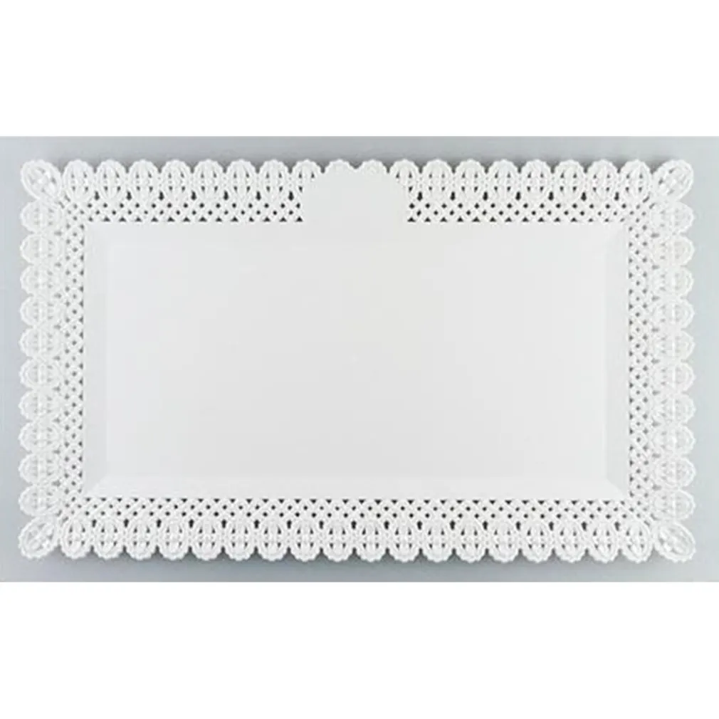 SET 2PZ VASSOIO TRAMA TRINATO BIANCO 37X22CM RETTANGOLARE PIATTO SOTTO DOLCI TRASPORTO