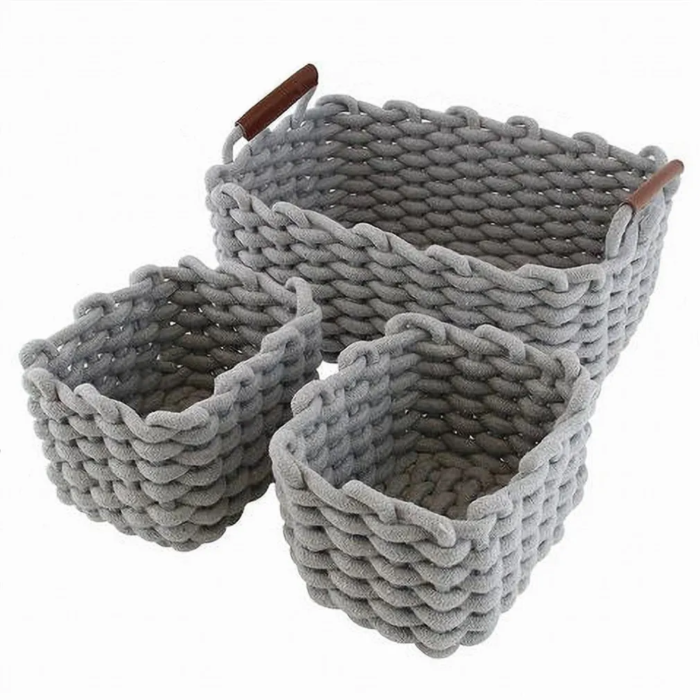 SET 3 CESTINI INTRECCIATI CORDA CESTO PORTA OGGETTI ORGANIZZA DECORA CASA 10635