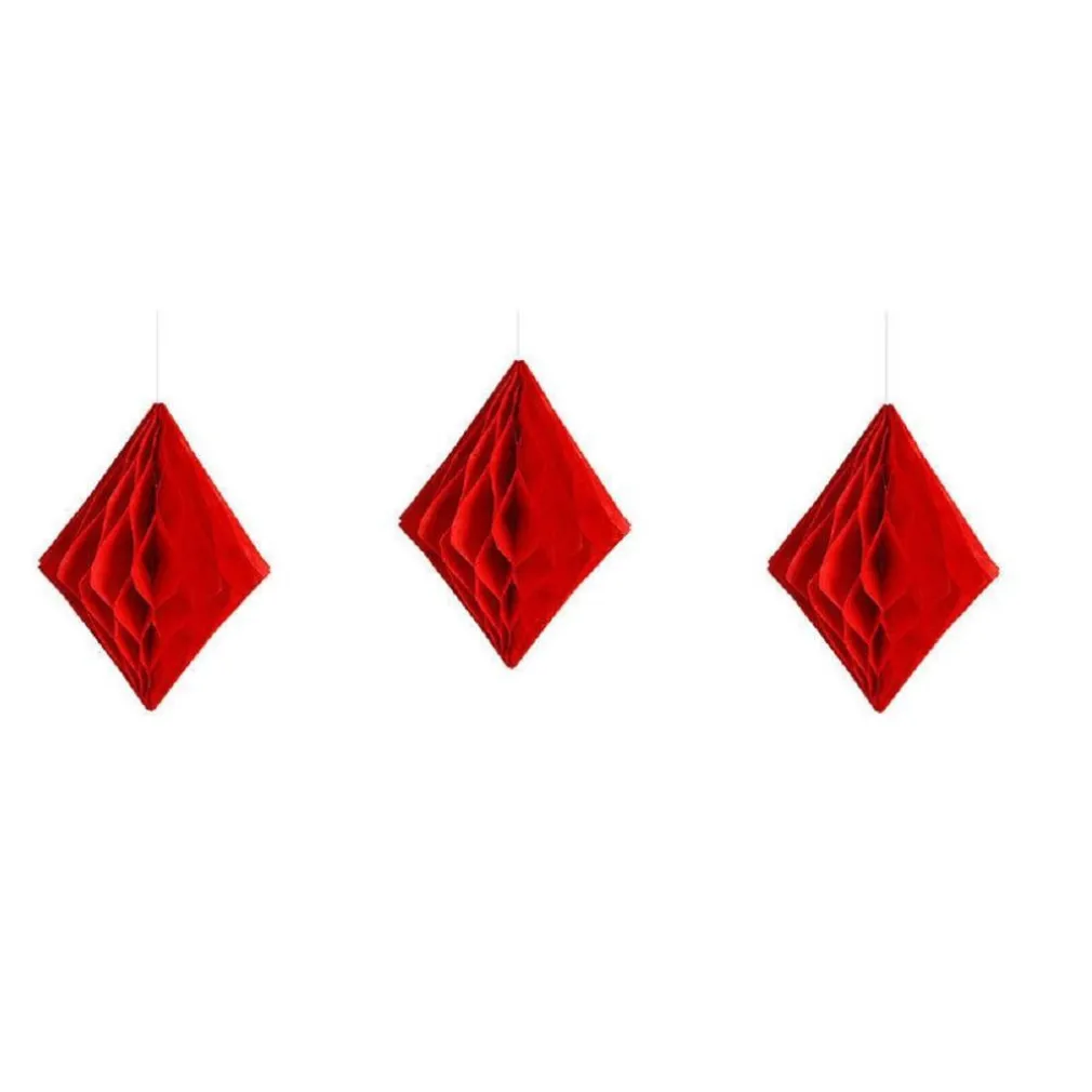 SET 3 FESTONI ROMBO DECORATIVI ROSSI CARTA VELINA DECORAZIONI ADDOBBI FESTE