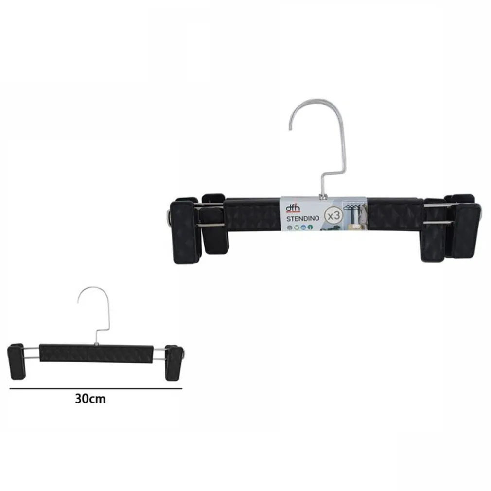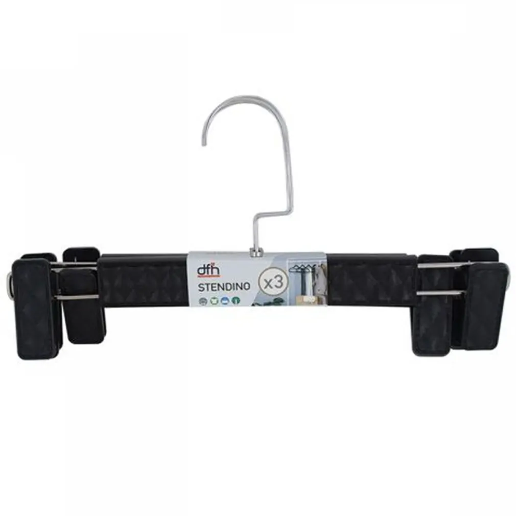 Set 2 grucce per pantaloni fashion in plastics. Le grucce nere hanno due clip antiscivolo e renderanno il tuo armadio più ordinato ed allegro. Comode e soprattutto salvaspazio, sono ideali per pantaloni, gonne, shorts, e altri accessori!