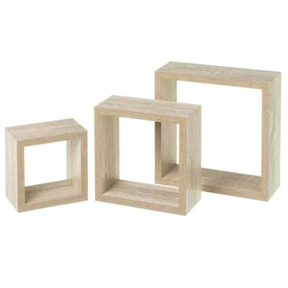 Set 3 Mensole da Parete Moderne Design Cubo Mensola Scaffale in Legno MDF Beige