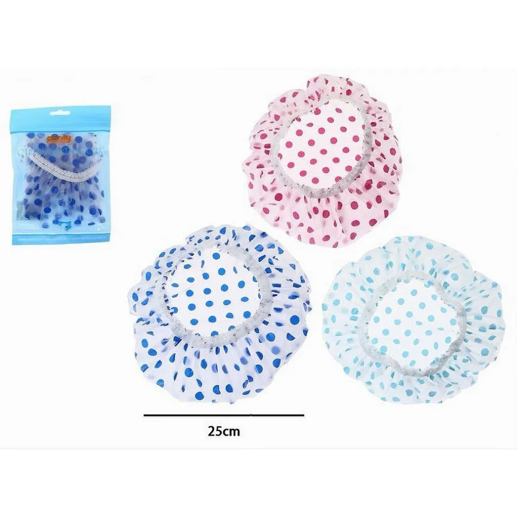 Vuoi proteggere i tuoi capelli durante la doccia, il condizionamento o la colorazione? Il Set 3 pezzi cuffie per doccia bagno protegge capelli è la soluzione perfetta per te. Con una misura di 25 cm e un comodo elastico, queste cuffie sono pratiche e versatili. La fantasia a pois colorati aggiunge un tocco di stile al tuo momento di cura personale.