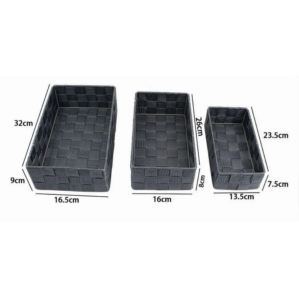 SET 3PZ SCATOLA PORTA OGGETTI TESSUTO INTRECCIATO CONTENITORI GRIGIO SCURO 79056