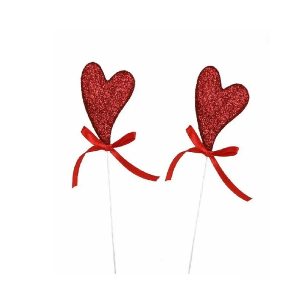 Cosa include il set? Il set comprende 4 cuori in polistirolo glitterato, ciascuno con uno spillone e uno stand.
