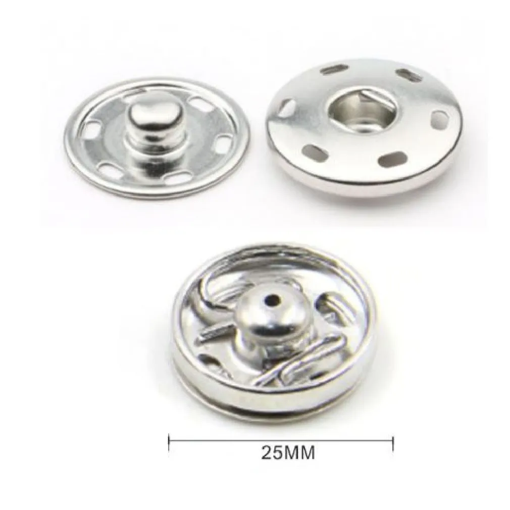 Questi bottoni automatici a pressione da cucire hanno un diametro di ø 25 mm. Questo kit scorta di bottoni è progettato come ricarica per i tuoi prossimi progetti di cucito e creativi. Questo kit di bottoni automatici arricchiscono la tua scorta e ti aiuterà con i tuoi progetti di cucito in pelle, cotone, tessuto sintetico, poliestere e denim.